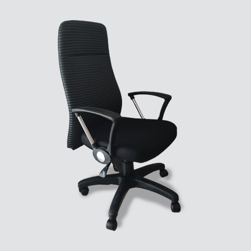 Executive revolving chair, seat, and back upholstered in leatherette, imported nylon base and arms, synchronized tilt mechanism,