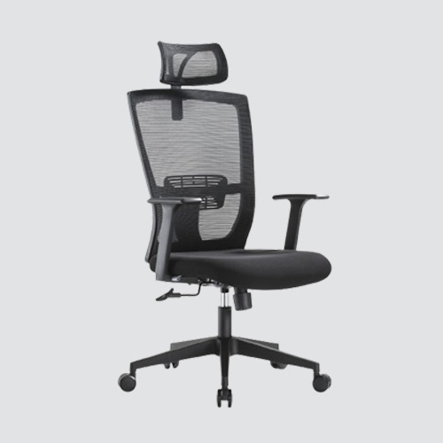 Executive revolving chair, adjustable headrest with mesh fabric, back in black polymer frame and nylon mesh with lumber support, seat upholstered in mesh fabric, PU soft adjustable armrest, nylon base with synchronize mechanism with tilt tension control.