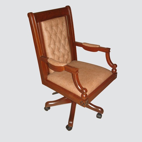 Executive revolving chair, structure made of solid seasoned wood with high-quality lacquer polish finish, upholstered in leatherette, tilt mechanism with two stages lock.